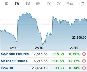 The big earnings rally helped the NASDAQ finish the day with a new record close and 2.2% gain. This put the NASDAQ in positive territory for the week. But the S&P also benefitted. Up 0.8% on Friday, the S&P finished positive and ended at record levels as well.