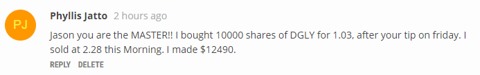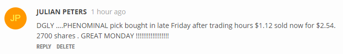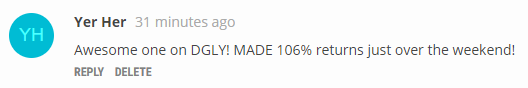 All 4 of his Watchlist alerts spiked up over the weekend, including GRPN +18% and DGLY + 193%.