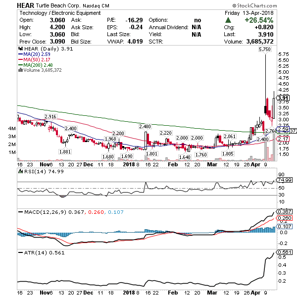 HEAR – I wasn’t able to capture a nice win on this Friday, despite the perfect setup, because it got out quickly and I didn’t want to chase. Now I’m watching $3.70’s as support and looking for a move to the $5’s for this earnings winner.