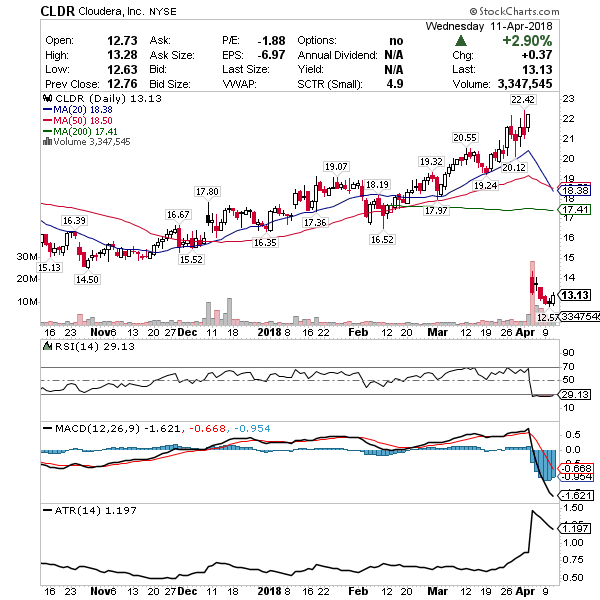 CLDR – Oversold chart pattern down on earnings and weak guidance. A few downgrades weighed on it but Wednesday it showed signs of bottoming, diverging from the overall market. Confirmed candle over candle Tuesday into Wednesday with $12.57 as the stop loss. History of bounces out of oversold. Goal is $2 – $3 / share up to $16 for profit.
