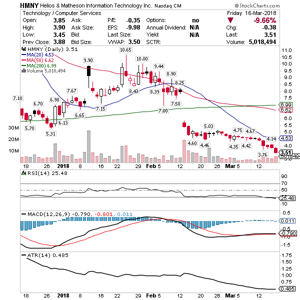 HMNY – MoviePass scaling and monetization of user base. Oversold chat pattern and it’s heavy finding little real buying into dips. It’ll take significant good news to trigger a squeeze on this one and it has that potential.