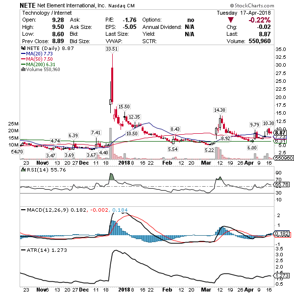 NETE – With Jon Najarian added to the board of directors recently I think this is one to watch each and every time bitcoin makes a run. Right now it’s in play on a higher low setup above $8 for a breakout above the recent $10.30 high. Has range to $15 as seen on the chart and catalysts that could trigger big moves.