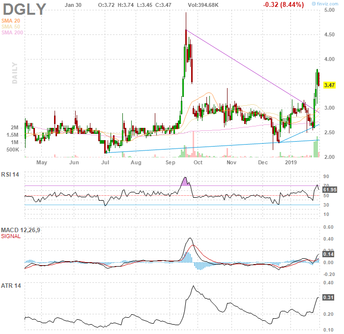 DGLY – My latest catalyst swing report that was on the watch list in the $2.60’s and alerted in the $2.80’s on this thesis which is still in play. Having taken a big profit in the $3’s, I’m looking for it to rest now and then I’ll rebuy.