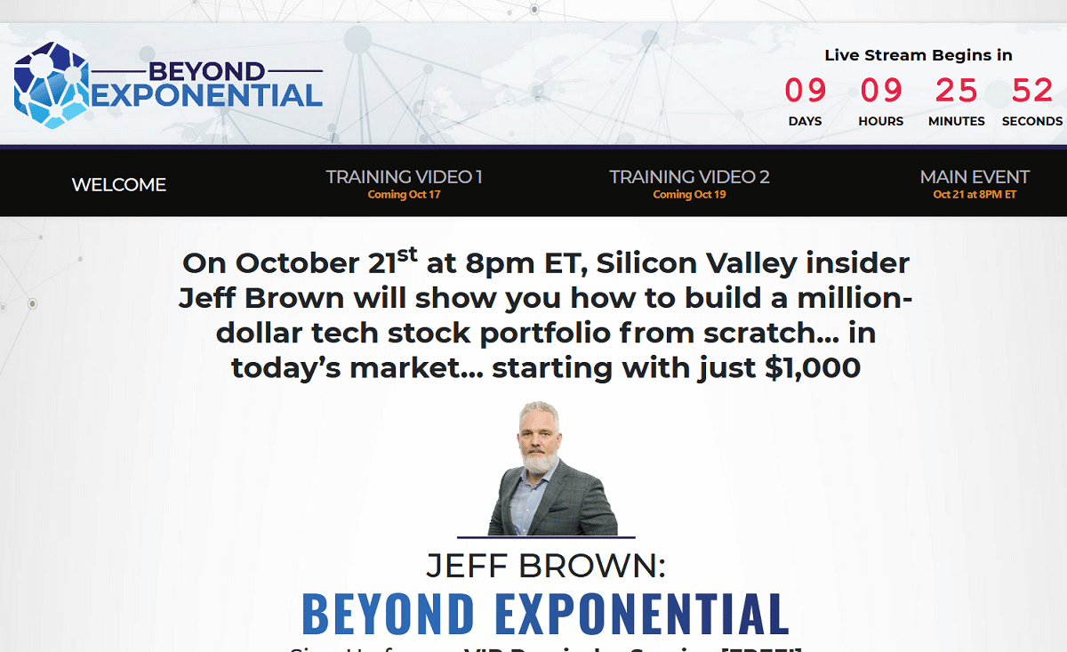 Jeff Brown: Beyond Exponential Summit is scheduled to take place On October 21 at 8 p.m. ET when Silicon Valley’s most successful investor Jeff Brown will reveal how to Build a Million-Dollar Tech Portfolio from Scratch.