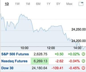 - The DOW ended with a 0.5% loss. Dropping 109 points, the DOW closed at 24,181.