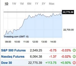• The DOW ended 0.4% higher. Adding 84 points, the DOW closed at 22,642.