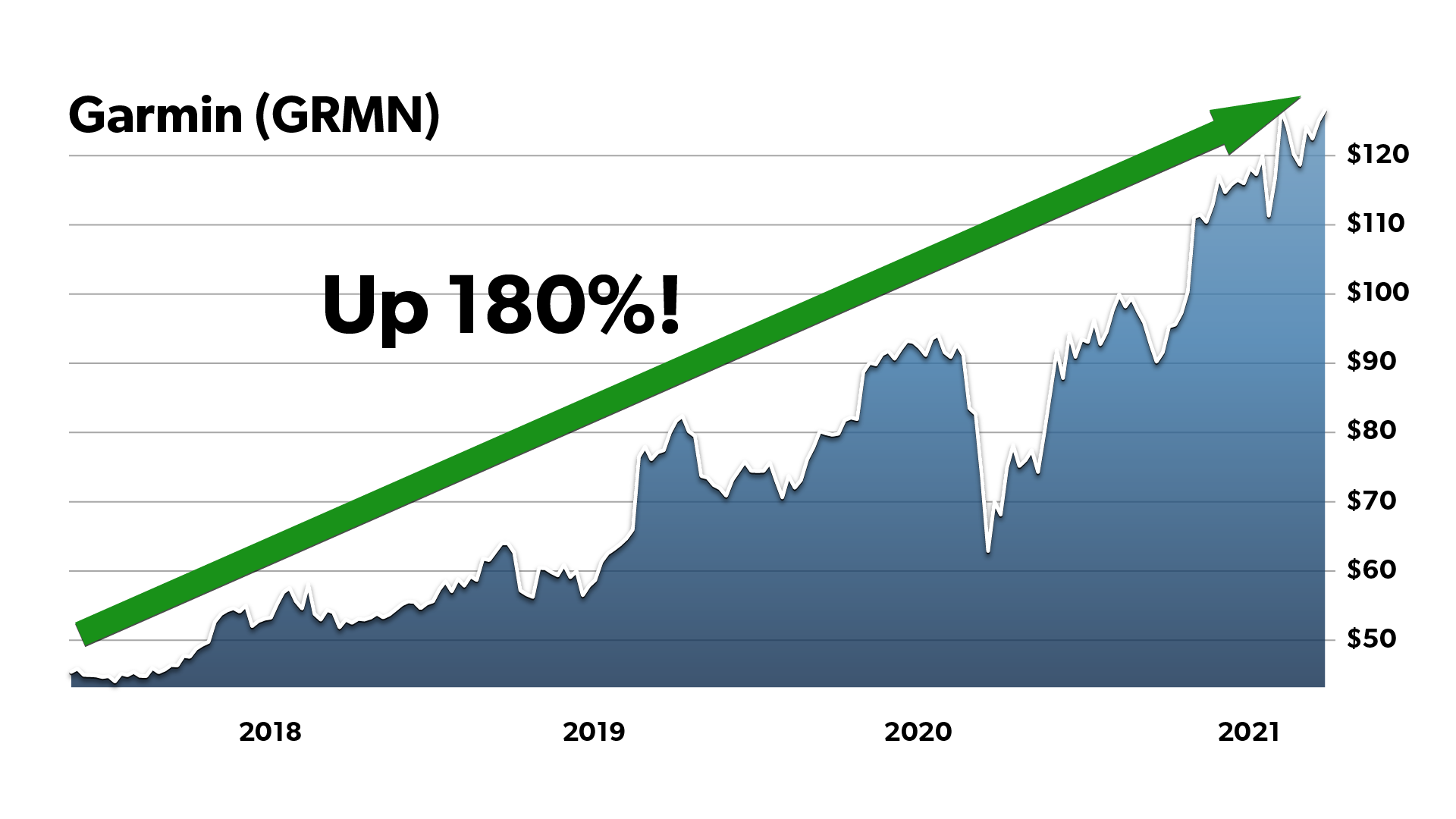 Or Garmin, which we closed for a 180% gain…