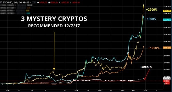 Bitcoin is up over 1,400% this year and it’s just getting started. With the mainstream still VERY unaware of the entire crypto currency phenomenon – there are TONS of Million Dollar Opportunities.