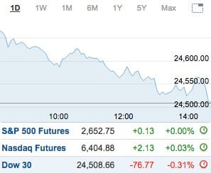 - The DOW ended with a 0.3% loss. Dropping 77 points, the DOW closed at 24,509.